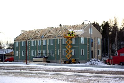 Tulevalla loma-asuntomessualueella rakennustyöt ovat päässeet hyvään alkuun (25.01.08). Joidenkin rakennusten osalta rakentaminen on edennyt jo harjakorkeuteen ja kun toisia vasta aloitetaan rakentamaan. |