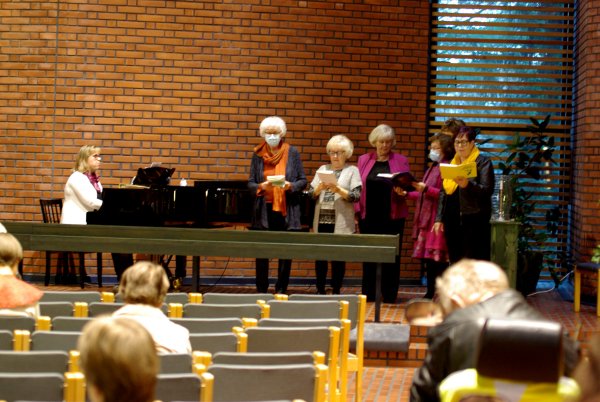 ![]() Naisten kahvilan kuoro avasi tilaisuuden perinteisellä laululla. Jumalan Rauha |