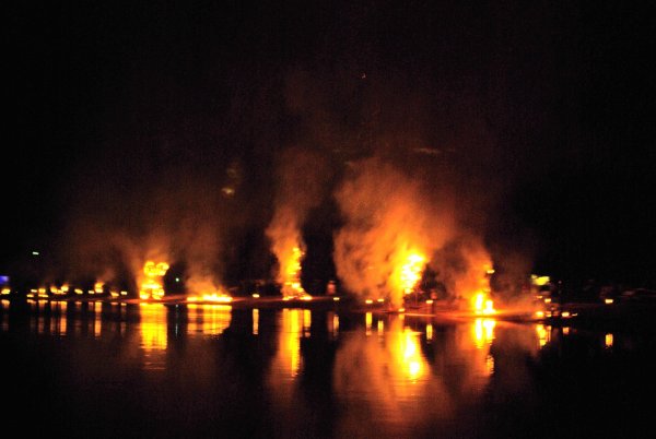saapunut Etelärantaan muutama sata henkilöä, pilvinen mutta sateeton sää auttoi tulien näyttävyyttä. |
