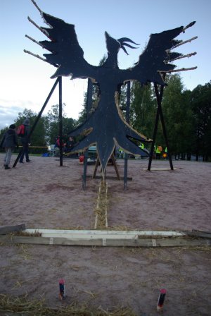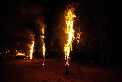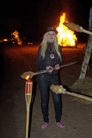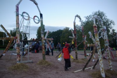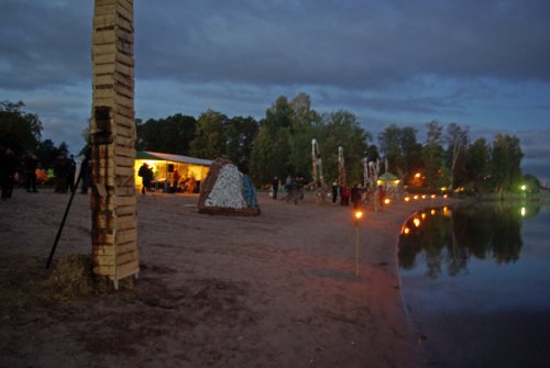![]() Rannalle oli tuotettu "orkesteri" luomaan tarinan kertomukseen taustaa. Tulien sytyttäminen mukautettiin kertomuksen ohjaamana. |