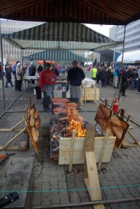 Odoteltaessa torijuhlan alkua oli mahdollisuus syödä perinteisiä porilaisia ruokia.
