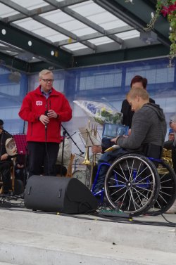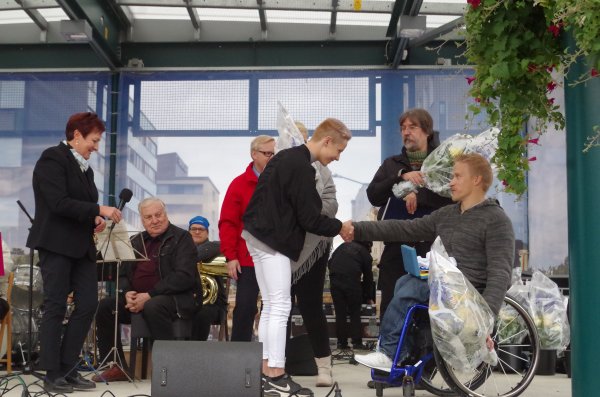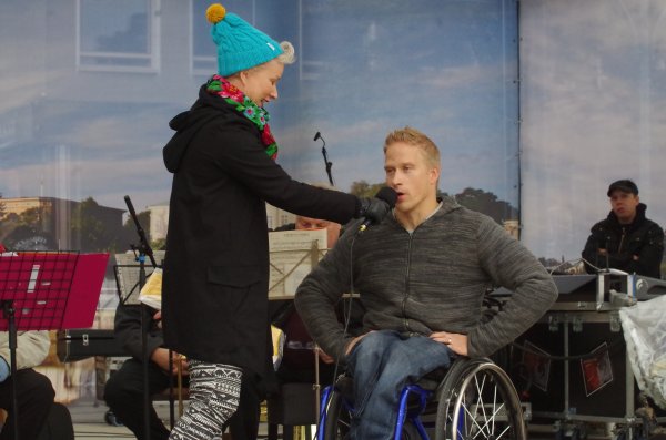 ![]() Rio de Janeiro 2016 paralympialaisten 100 metrin pyöräkelauksen voittaja Leo-Pekka Tähti saapui onniteltavaksi. Tähden voitto oli jo neljäs perättäinen 2004 Ateena, 2008 Peking ja 2012 Lontoo Tilaisuuden juontajana Elina Wallin haastatteli. |