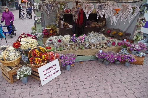 Kauniita käsintehtyjä koristeita oli hyvin esillä ja myynnissä.