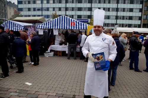 Satakunnan Keittiömestarit Porilaisia kaupaamassa.