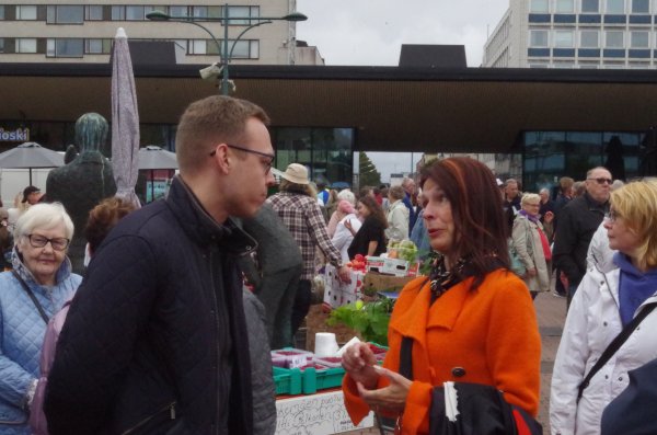 Torille ja kävelykadulle olivat saapuneet myös eri puolueita,