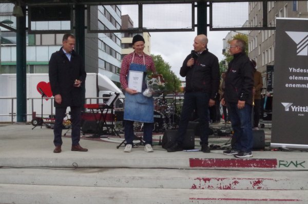 Vuoden maineteon palkinnon jakoi Satakunnan Viikko lehden Kim Huovinlahti,