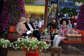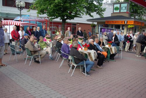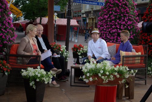 ![]() Yleisöä oli saapunut katselemaan ohjelman tekoa ja nauttimaan aamuauringosta |