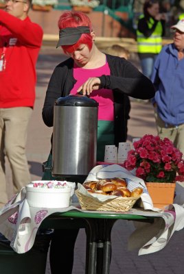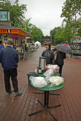 Kahvitarjoilu yleisölle ja haastateltaville, säistä riippuen.