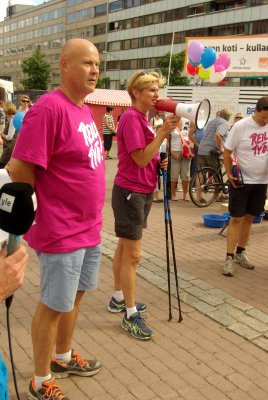 Maija Pihlajamäki ja Antti Palola kertoivat marssin tarkoituksesta ja kiittelivät osallistujia saavutuksesta.