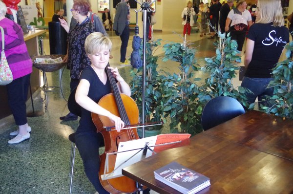![]() Kahvilan puolella vierailijoita ilahdutti sellon soitollaan Tampereen musiikki Amkk.ssa opiskeleva Iida Hirvola Porin Sinfonietan kesätervehdyksillä |