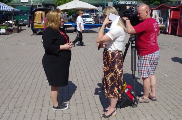 ![]() Ministeri Krista Kiurua haastateltiin torilla 18.7 |