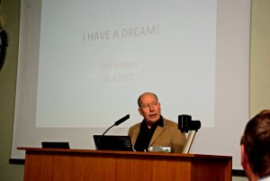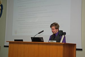![]() Tilaisuuden järjestäjän ominaisuudessa Matti Lankiniemi opastaa laitteiden käytössä |