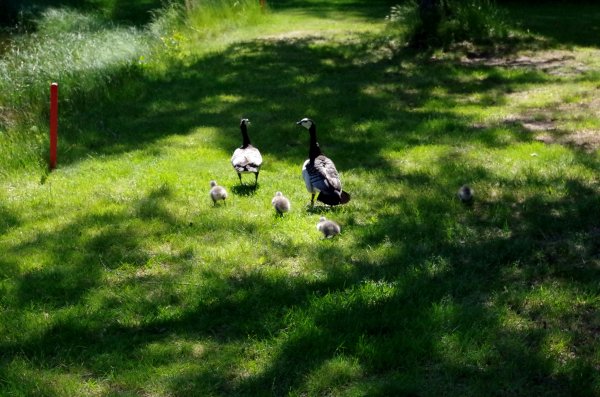 Vierailevina "tarkastajina" Valkoposki hanhet poikueineen