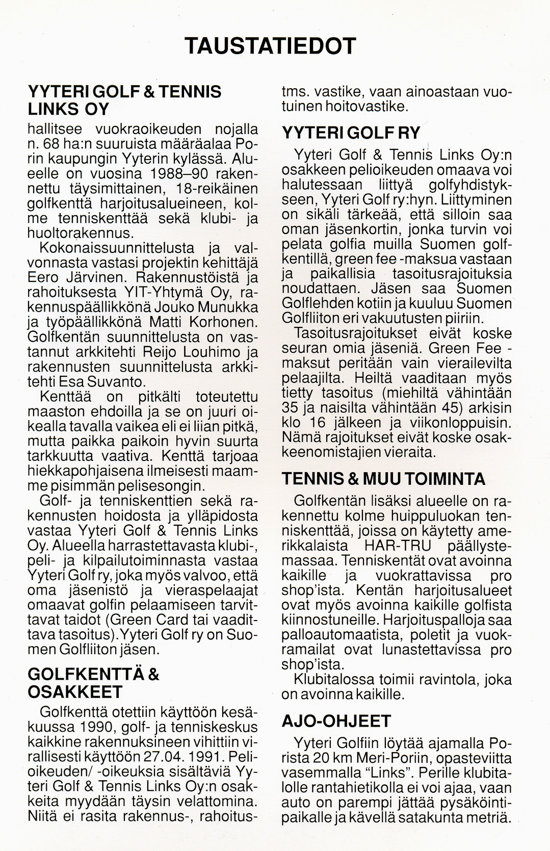 YYTERI  GOLF  &  TENNIS  LINKS  Oy