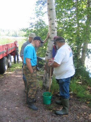 Jenni Sainalan ja Rauno Holmin toimesta Puhdas Valkjärvi ry. suoritti Vekuvi/Valkjärven kunnostustutkimuksen puitteissa "kunnostustalkoot" 04.08.2007, Valkjärven Liusviikinsellä. |