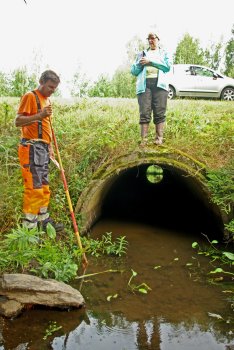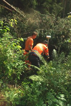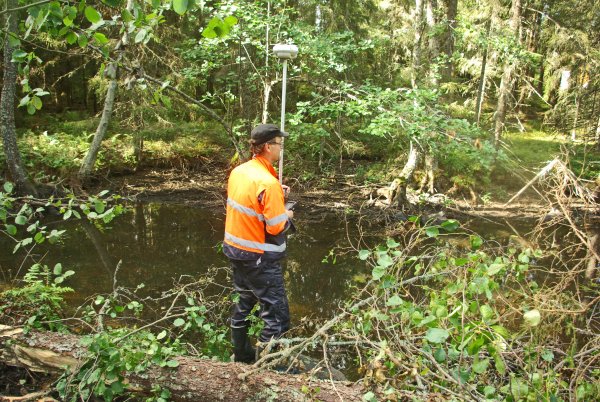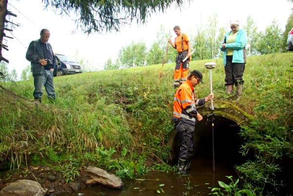 ![]() Saiskohan tästä ojarummulta mitattua?? Ojan reunusta oli tiivistä metsää, joten kauttaaltaan saatu mitauspisteitä. |