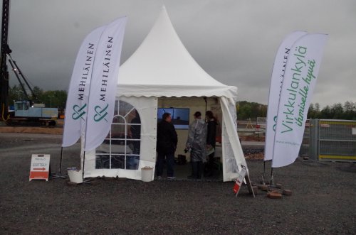 ![]() Virkkulankylän rakentamista ei vielä ollut aloitettu, mutta esittely hoitui virtuaalisesti. |