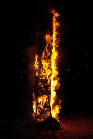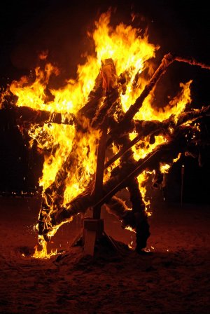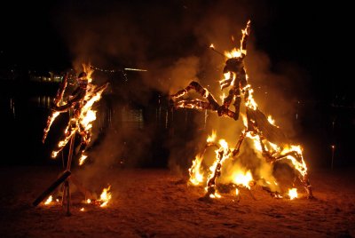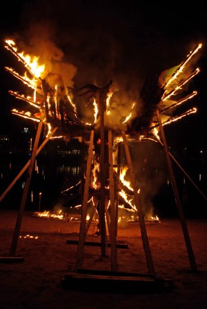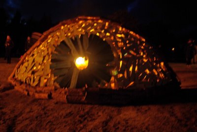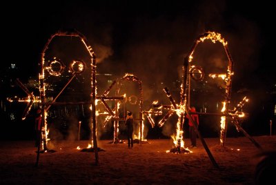 ![]() Rannalle oli tuotettu "orkesteri" luomaan tarinan kertomukseen taustaa. Tulien sytyttäminen mukautettiin kertomuksen ohjaamana. |