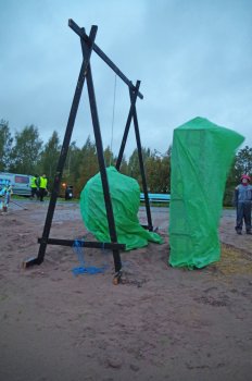 odottelun jälkeen kun tulia ei saatu kunnolla palamaan, sateen ja tuulen