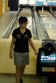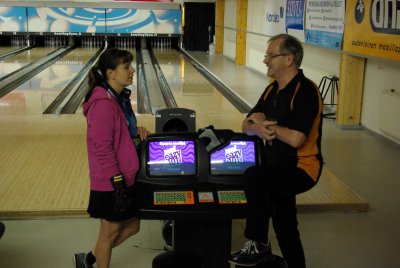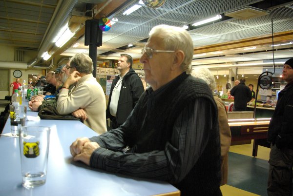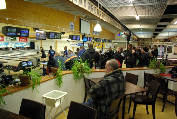 ![]() Runsaslukuinen yleisö seurasi finaaleja tarkkaavaisesti. Katsomossa oli kilpailua seuraamassa myös Pori keilailun Gran old man Erkki Lax |