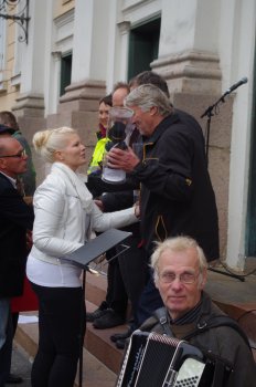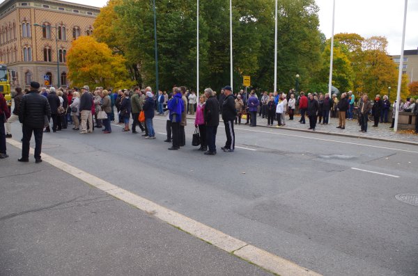 | Yleisöä oli saapunut paikalle parisensataa, seuraamaan tilaisuutta. |