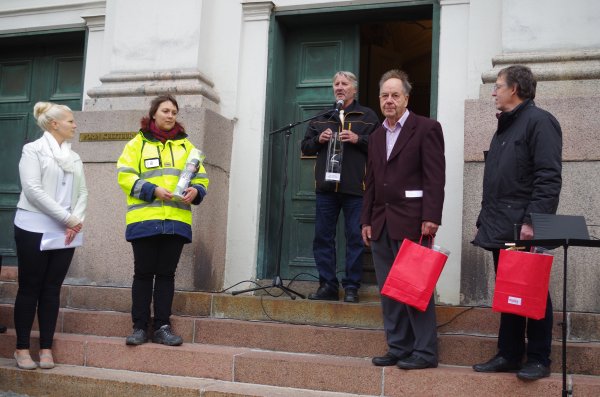![]() Kiitokset saivat mm. hitsausmestari Eero Niittynen, kansalaisaktiivisuuden projektivastaava Markku Tanninen, Winnovan hitsauksen opettaja Mattila |