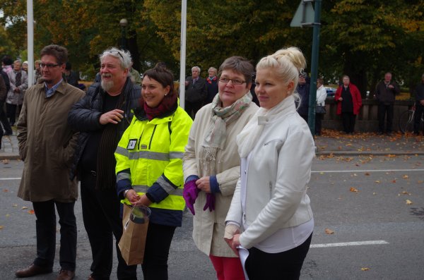 ![]() Myös kulttuurilautakunnan jäseniä oli saapunut katsomaan patsaiden asennusta ja onnittelemaan tekijöitä. |