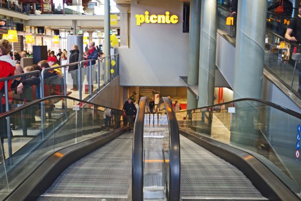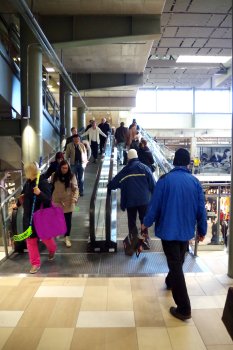 | Kulkeminen kerroksesta toiseen on helppoa hissillä tai "liukuhihnaa" pitkin, myös rattaitten kanssa | ||
