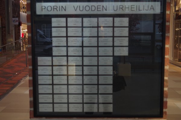 | Porin vuoden urheilija patsas, etelän puoleisessa päädyssä (Kutomon aukiolta) | ||
