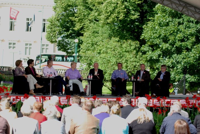 ![]() SuomiAreenan yksi mielenkiintoisemmista paneelikeskusteluista keskiviikolla oli hallitus vastaan oppositio. Puolueiden puheenjohtajat olivat sopineet jäävänsä pois SuomiAreenan tapahtumista. Keskustelemassa olivat Anna-Maja Henriksson (RKP), Ville Niinistö (Vihreät), Sampsa Kataja (Kok), Kimmo Tiilikainen (Keskusta), Matti Putkonen (PerSu), Mikael Jungner (SDP), Risto Kalliorinne (Vas) ja Peter Östman (KD) |