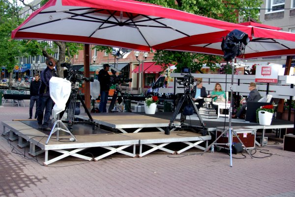 ![]() TV lähetyksen tuottamisessa on suuri joukko "näkymättömiä" henkilöitä. Nyt Porissa on ollut Jazz ja Suomiareenan vierailla mahdollisuus tutustua TV toimintaan, |