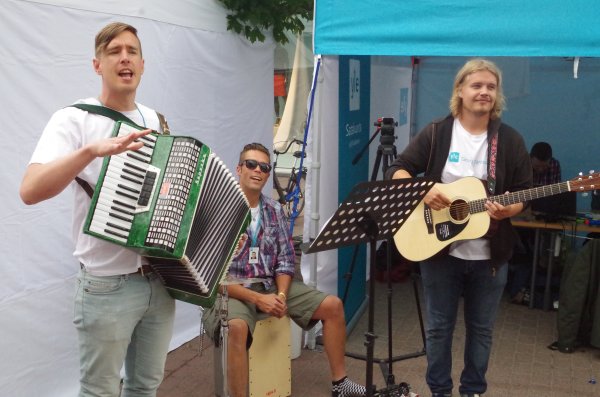 ja samalla henkilöiden oma Trio viihdytti ohikulkijoita musiikilla