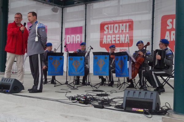 ![]() Varusmiessoittokunta Hämeenlinnasta esittäytyi Porilaisyleisölle, Musiikkikapteenin Jarkko Aaltosen kertoen aluksi varusmiessoittokunnan toimintaa ja miten se eroaa Sotilassoittokunnasta. |