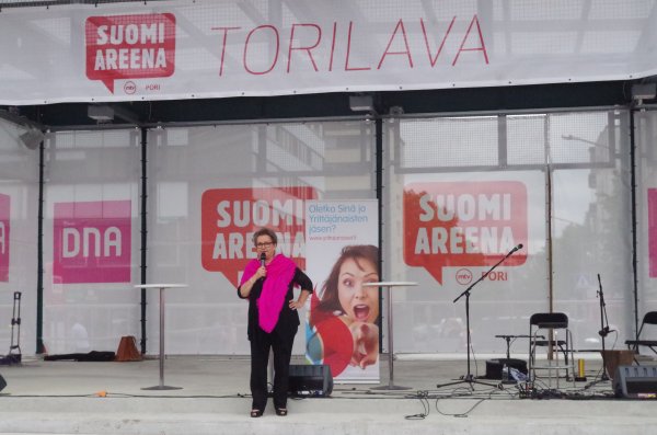 ![]() Torilavan läheisyydessä myös tilaisuuksia kuunnellessa taamisia. |