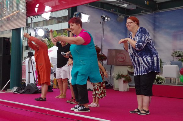![]() MTV lavalla on SuomiAreenan aikana ollut erilaisia liikunnallisia tempauksia ja näytöksiä. Mannerheimin Lastensuojeluliitto järjesti lasten, vanhempien ja isovanhempien opiksi yhteisliikunta esityksen. |