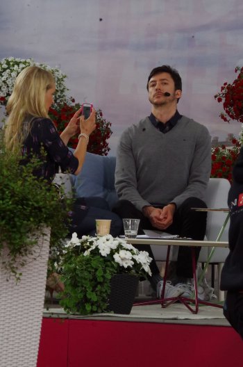 ![]() Haastattelussa tilaisuuden tuottaja Mari Haavista, Kaup.joht. Aino-Maija Luukkonen ja Mtv3n Ylä-Anttila |