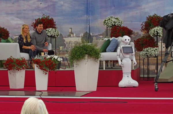 ![]() MTVn toimittajat ja robotti valmiina |