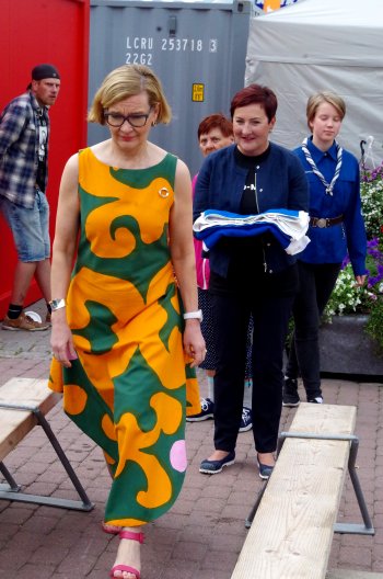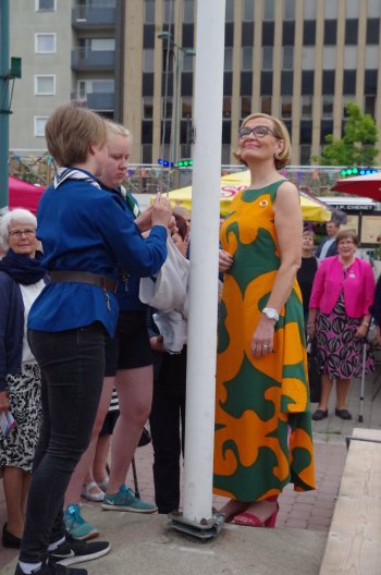 ![]() Tilaisuuden avaus aloitettiin Suomi 100 vuoden itsenäisyyden kunniaksi lipun nostolla. Lipunnoston suoritti Sisäministeri Paula Risikko, Porin kaupunginjohtaja Aino-Maija Luukkonen ja partiolaiset. |