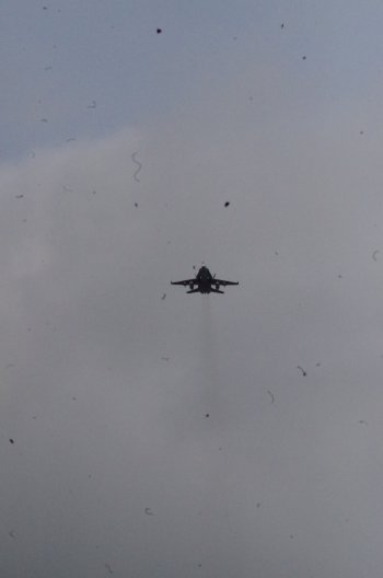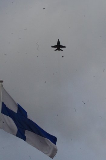 ![]() Lipunnoston jälkeen Ilmavoimien Hornet suoritti ylilennon |