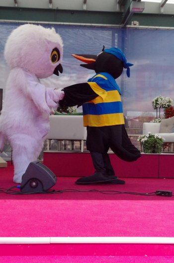 ![]() Lopuksi MTV-Pöllö ja Kirjuriluodon Fiksu-Varis innostuivat tanssimaan |
