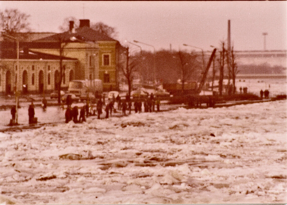 Jäät ylettyivät jokisataman rannassa laitureiden tasolle.
