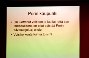 ![]() Tilaisuuden avasi Aki Nummelin, järjestäjänä toimi KSL Porin opintojärjestö |