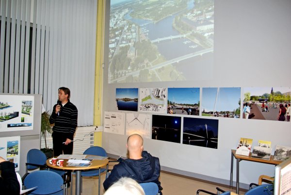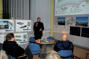 ![]() Porin kaupunkisuunnittelupäällikkö Olavi Mäkelä esitteli perusteluita, mitkä tekijät johtivat jokikeskuksen kehittämiseksi. |