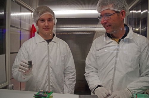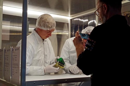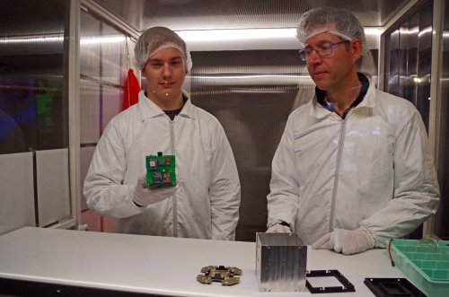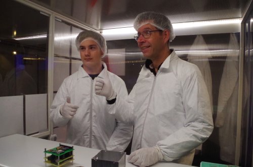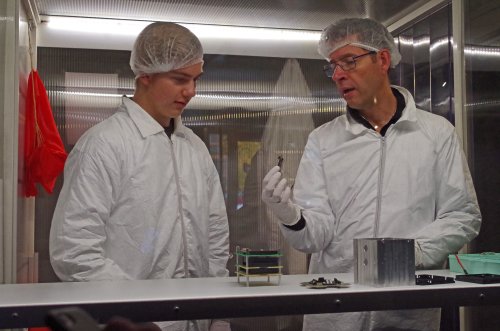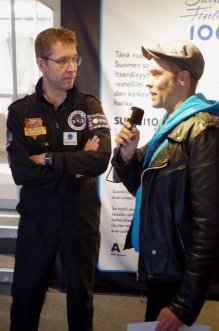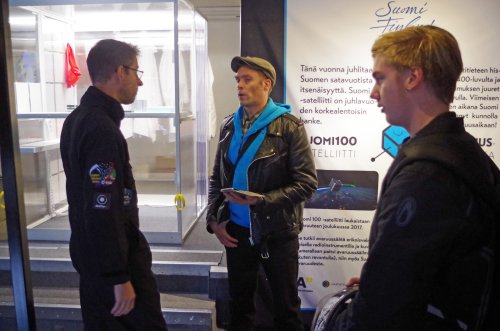 Esittelyauton pysähdyspaikkakunnilla koottiin myös satelliittia. Porin Lyseon lukiosta Aleksi Erola sai kunnian osallistua Porissa satelliitin rakentamiseen. ![]() |